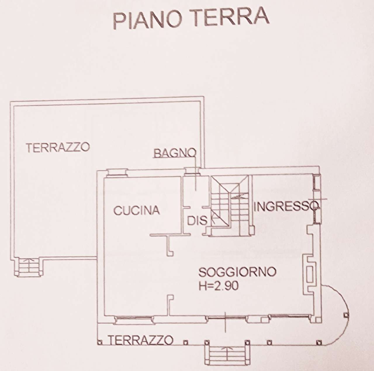 Un elegante bagno e' dedicato al piano living.
